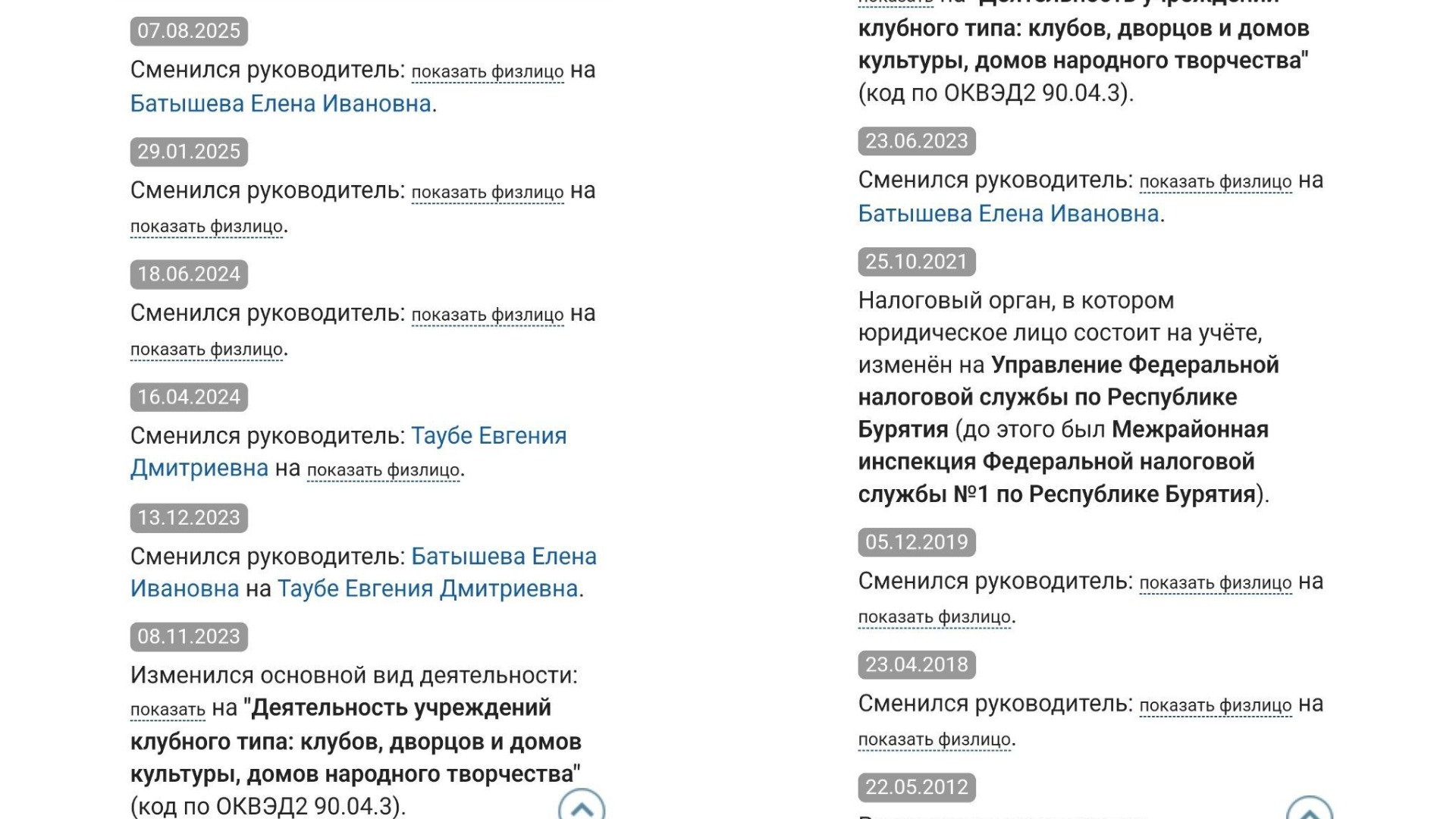 Старое здание советской постройки стоит на берегу Байкала и медленно разрушается без надлежащего ухода. Глава поселения Светлана Кривогорницына распределила три полные ставки сторожей-истопников клуба между шестью работниками. Каждый из них формально работает на половину оклада. Эта манипуляция позволила чиновнице трудоустроить в сельский клуб в два раза больше лояльных людей. Жители Максимихи утверждают, что двое из этих сотрудников вообще не выходят на работу.