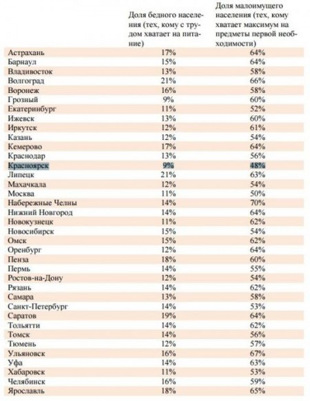 По результатам исследования департамента социологии Финансового университета при правительстве РФ лидерами рейтинга самых богатых городов России стали Красноярск и Грозный. Именно там проживает наименьшее количество бедных людей в России – всего 9%.
