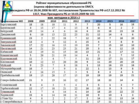 Министерство экономики Бурятии представило ежегодный рейтинг эффективности районных властей. Статистика оказалась неутешительной для некоторых особо одаренных государевых слуг, зато весьма наглядной для населения.
