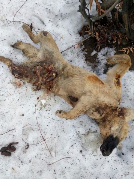 Жителям иркутского микрорайона Юбилейного стоит включить бдительность и следить за своими питомцами. 26 марта 2018 года в одном из дворов, возле дома 47, найден труп собаки. У животного были выколоты глаза, вспорот живот, вывалившиеся внутренние органы, сломанные лапы, травмированный позвоночник.