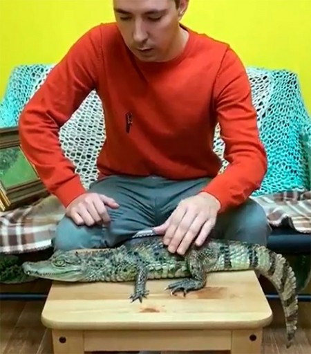 Молодой красноярский художник Виктор Каплун получил в качестве платы за свою работу живого крокодила. Такой подарок преподнёс молодому художнику местный предприниматель. Обратит ли теперь внимание на это местный Росприроднадзор? Теперь только в намордниках. Новые правила обращения с животными.