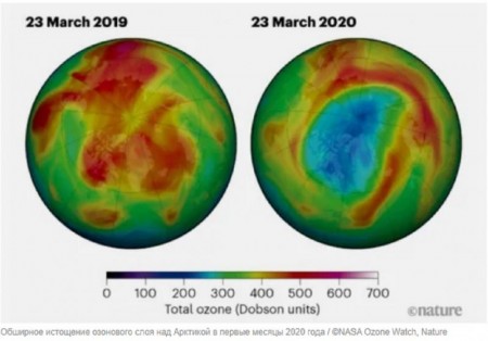Озоновый слой в атмосфере над Арктикой, который защищает Землю от губительного ультрафиолетового излучения, в 2020 году уменьшился до самых низких величин за последние девять лет. Об этом сообщает официальный представитель Всемирной метеорологической организации Клэр Нуллис.