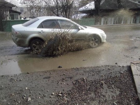 В Иркутске начался традиционный весенний апокалипсис на дорогах. Под растаявшим снегом внезапно обнаружились ямы размером с автомобильное колесо, а иногда и больше. Водители лавируют по уцелевшим участкам асфальта, костеря мэрию и создавая аварийные ситуации.