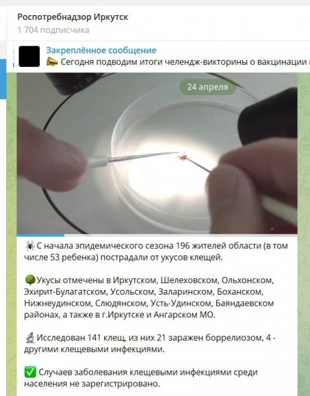 Интересная бухгалтерия выходит с клещами у управления Роспотребнадзора по Иркутской области. Берем данные с его сайта и скриншоты с Телеграм-канала.