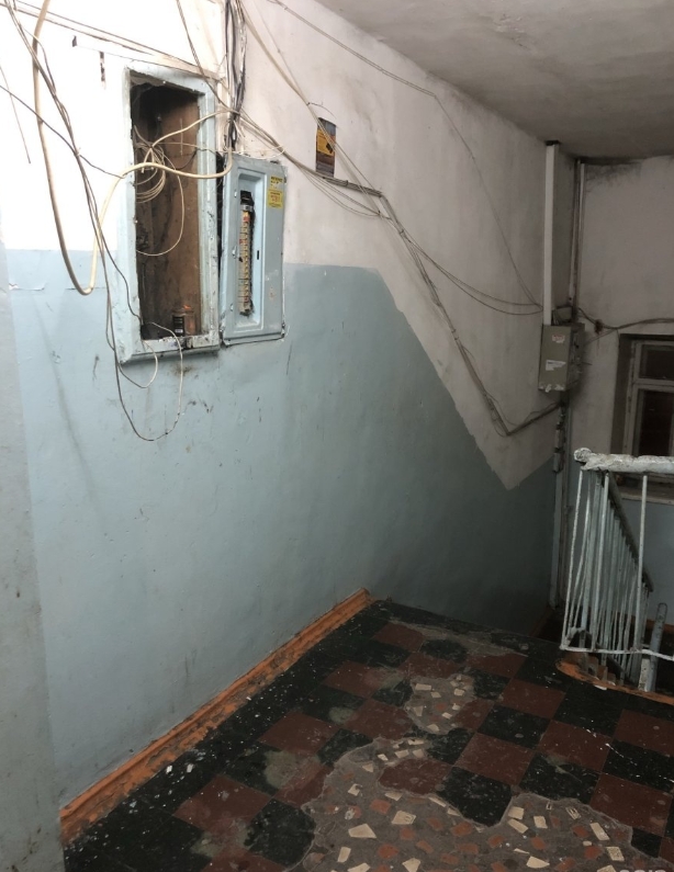 Зоны общего пользования напоминают кадры из старого фильма ужасов. Кухни и мойки разрушены, стены ободраны, плитка давно осыпалась. Электропроводка свисает прямо с потолка и стен, и это не образное выражение, а реальность. Провода оголены, в щитках нет крышек, а перебои со светом стали привычным явлением. Жители боятся, что однажды проводка замкнёт, и тогда дом загорится за считаные минуты.