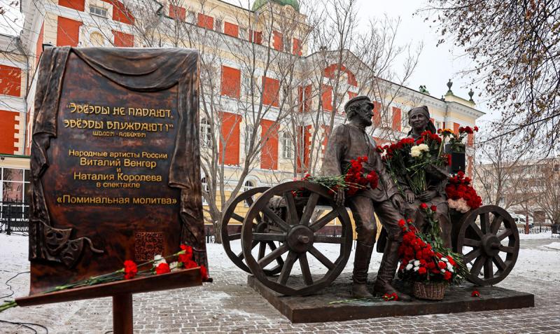 Знаковая для Драматического театра и всего города скульптура работы Анны Кочегиной запечатлела легендарных корифеев охлопковских подмостков в сцене из спектакля Драматического театра «Поминальная молитва» по пьесе Григория Горина. Открытие приурочили к 175‑летию театра, в котором Венгер и Королёва прослужили на двоих без малого сто лет.