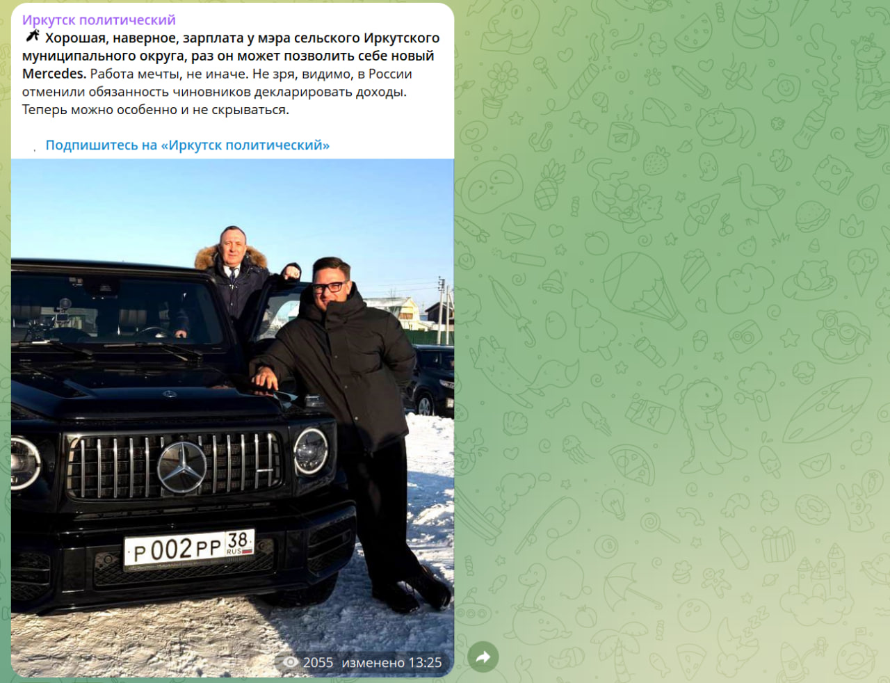Мы поможем и немного расшифруем, в надежде, что Леонид Петрович увидит простой посыл: в эпоху, когда сотни тысяч жителей Приангарья вынуждены устанавливать самозапрет на кредиты, дорожные службы региона работают с критическим недофинансированием и нехваткой техники, строительство социальных объектов приостановлено из-за сокращения бюджетов (список характеристик времени можно продолжать еще долго) подобная демонстрация благосостояния выглядит как издевательство.