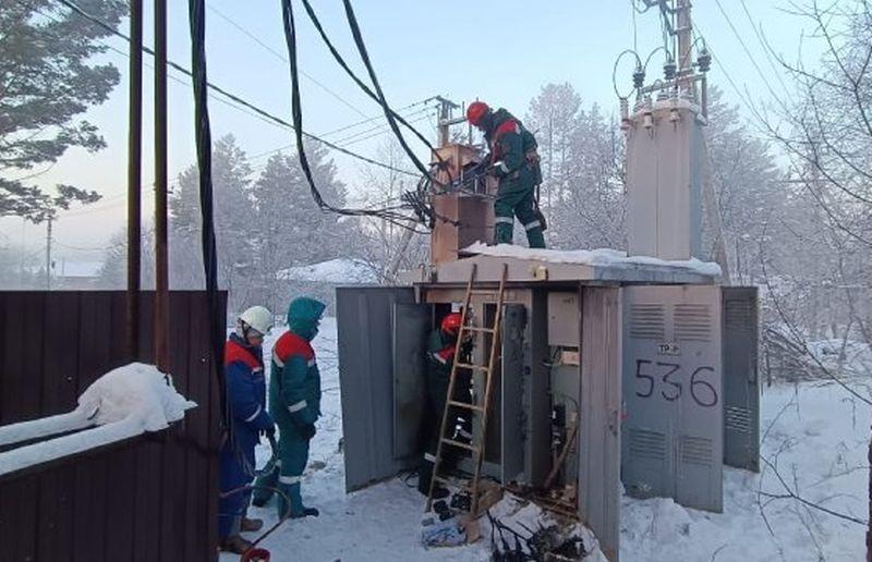 На месте работали ремонтные бригады ИЭСК, которые установили дополнительный рубильник к имеющимся двум, чтобы «разделить» потребителей и увеличить нагрузочную способность подстанции.