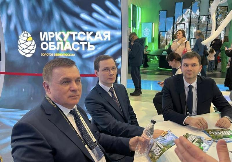 Здесь Максим Александрович в рабочей обстановке (он в центре), на международной выставке-форуме «Россия»