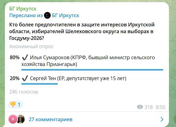 При этом коммунисты предпочитают пока не распространяться насчет предположения, что от Шелеховского округа выдвинется супротив трехкратного депутата Госдумы Сергея Тена бывший министр сельского хозяйства региона, отпрыск свиноводческого клана Сумароковых Илья Павлович.