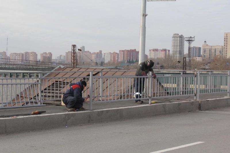 Ремонт моста начинали еще в июне. Подрядчик должен заменить 34 деформационных шва, установить пешеходное ограждение и отремонтировать парапет.