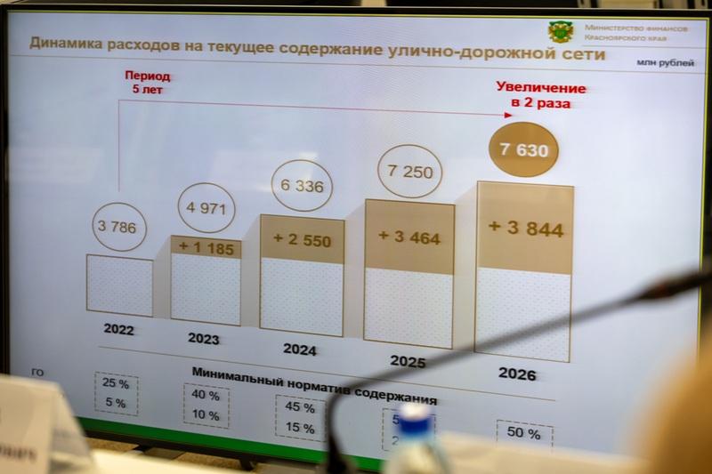 Сперва перед парламентариями с отчетом выступил министр транспорта Дмитрий Зотин. Он провел небольшой ликбез, сообщив, что ремонт автодорог осуществляется за счет трех видов субсидий из краевого бюджета. Муниципалитетам выделяются средства на ремонт подъездов к СНТ, на капитальный ремонт и ремонт автодорог, на осуществление дорожной деятельности в целях решения задач социально-экономического развития. Общий объем финансирования по всем направлениям в 2025 году составил 6,8 миллиарда рублей, из них 1,7 миллиарда – Красноярску.