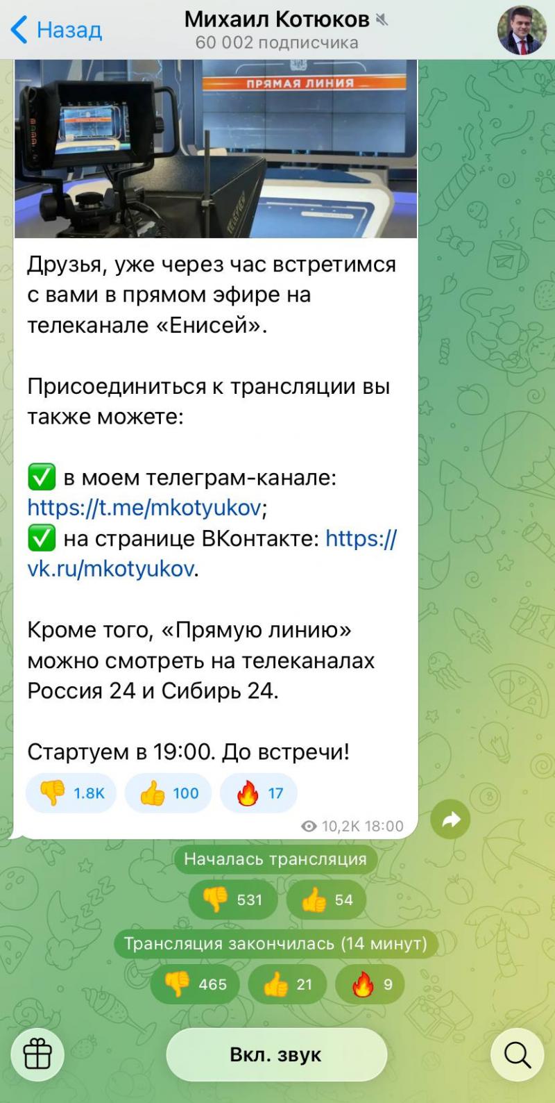 Похоже, этот эфир получился настолько скучным, что часть телеграм-каналов, которые обычно неустанно комментируют монолог губернатора, уснули.