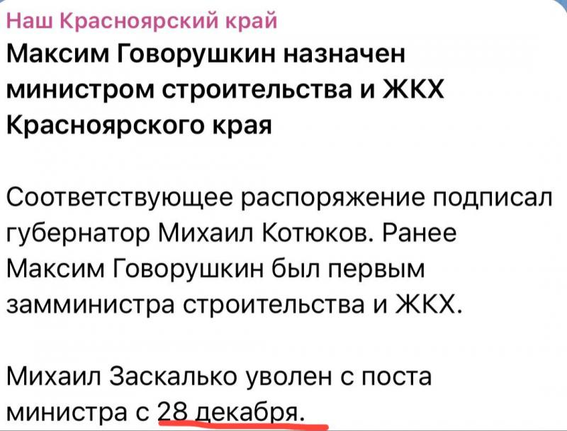 Телеграм Красноярска за неделю. Увольнение Заскалько, выплата метростроителям и Терехов не всё
