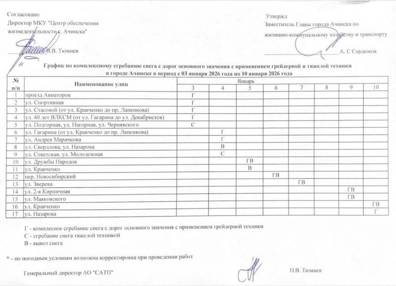 – Жители Ачинска возмущены тем, как чистятся от снега дороги. Любопытно, почему все так печально. В сети есть вот такой документ. Судя по нему, дороги в Ачинске убираются по-братски. Один брат согласовывает график уборки дорог, другой исполняет. Правда, удобно? Один брат подает документы об исполнении, другой подписывает, принимая работы. Как будто в этой братской артели не хватает немного объективного прокурорского надзора? – задается вопросом политический аналитик Алексей Аксютенко.