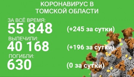 В Томской области по состоянию на 30 ноября зарегистрировано 55 848 случаев коронавируса. В минувшие сутки заболевание выявили у 245 жителей региона. С начала эпидемии излечились 40 168 человек. За сутки с 29 по 30 ноября выздоровели 196 пациентов.
