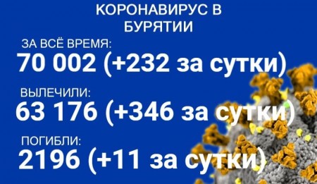 По данным на 1 декабря, еще 232 человека в Бурятии заболели COVID-19. Также за сутки 346 пациентов выздоровели, еще 11 скончались. Об этом сообщает пресс-служба регионального Роспотребнадзора. В настоящее время лечение в стационарах проходят 1235 человек с коронавирусом и подозрением на него.