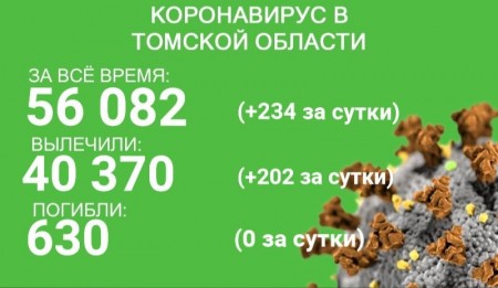 В Томской области заболеваемость коронавирусом остается стабильно высокой: за сутки с 30 ноября по 1 декабря выявлено 234 новых случая заболевания. Всего в регионе заболели 56 082 человека. С начала эпидемии излечились 40 370 человек. В минувшие сутки выздоровели 202 пациента.