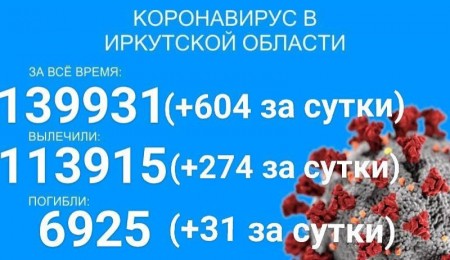 По данным оперштаба Иркутской области на утро 6 декабря, в регионе официально зарегистрировано 142933 подтверждённых тестами ПЦР случая заболевания коронавирусом. Прирост за сутки составил 598 человек, в том числе 107 детей.