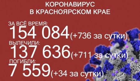 Ко 2 декабря COVID-19 заразились 154 084 жителя края, суточный прирост – 736. Количество погибших увеличилось до 7559, скончались ещё 34 больных коронавирусом. 137 636 человек уже выздоровели, в том числе 711 за последние сутки.