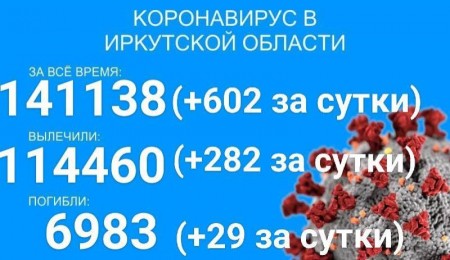 По данным оперштаба Иркутской области на утро 3 декабря, в регионе зарегистрировано 141138 официально подтверждённых случаев заболевания коронавирусом. За сутки было выявлено 602 новых случая. 4823 человека находится на лечении в ковидных стационарах.