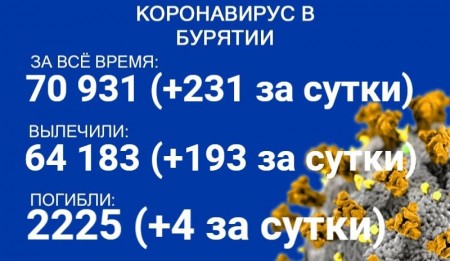 По данным на 5 декабря, еще 231 человек в Бурятии заболел COVID-19. Также за сутки 193 пациента выздоровели, четверо скончались. Об этом сообщает пресс-служба регионального Роспотребнадзора. В настоящее время лечение в стационарах проходит 1261 человек с коронавирусом и подозрением на него.