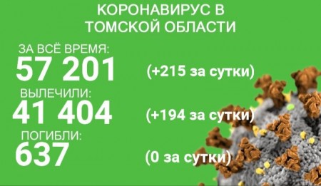В Томской области за сутки с 5 по 6 декабря выявлено 215 новых случаев коронавируса. Всего в регионе заболели 57 201 человек. С начала эпидемии излечились 41 404 человека, 194 из них выздоровели за минувшие сутки. В регионе от коронавируса и его осложнений погибли 637 человек.