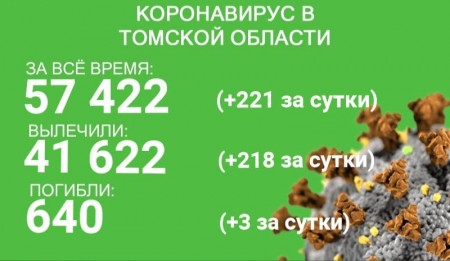 В Томской области на 7 декабря зарегистрировано 57 422 случая новой коронавирусной инфекции. В минувшие сутки заболевание выявили у 221 человека. С начала эпидемии в регионе излечились 41 622 пациента, 218 из них выздоровели за сутки с 6 по 7 декабря.
