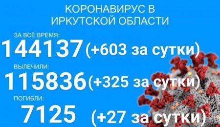 По данным оперштаба Иркутской области на 8 декабря, в регионе зарегистрировано 144137 официально подтверждённых тестами ПЦР случаев заболевания коронавирусом. Прирост за сутки составил 603 новых случая, в том числе 107 детей.