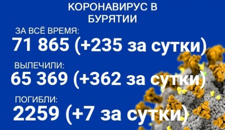 По данным на 9 декабря, еще 235 человек в Бурятии заболели COVID-19. Также за сутки 362 пациента выздоровели, семеро скончались. Об этом сообщает пресс-служба регионального Роспотребнадзора. В настоящее время лечение в стационарах проходят 1218 человек с коронавирусом и подозрением на него.