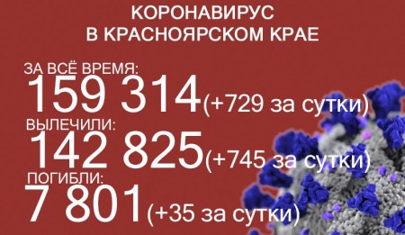К 9 декабря COVID-19 заразились 159 314 жителей края, суточный прирост – 729. Количество погибших увеличилось до 7801, скончались ещё 35 больных коронавирусом. 142 825 человек уже выздоровели, в том числе 745 за последние сутки.