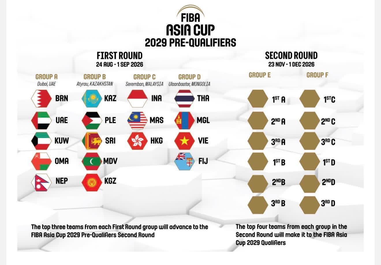 Монголия получила право провести предварительные отборочные матчи группы D чемпионата Азии по баскетболу 2029 года. Об этом официально сообщила Монгольская федерация баскетбола. Турнир пройдет в Улан-Баторе с 24 августа по 1 сентября 2026 года и станет частью первого этапа квалификации Кубка Азии ФИБА.