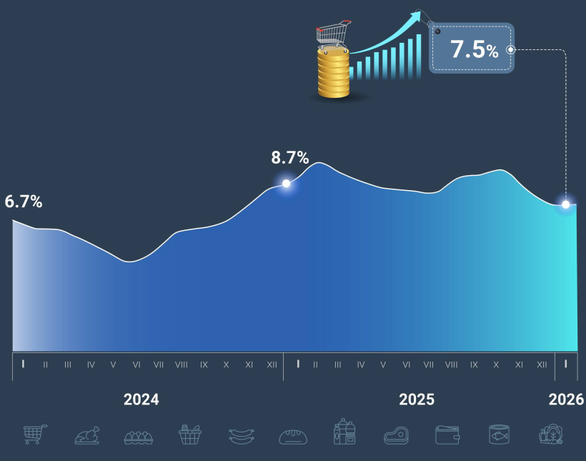 В Монголии усиливается давление на потребительские цены, и январская статистика только закрепила этот тренд. По официальным данным, стоимость товаров и услуг в годовом выражении выросла на 7,5%, а за месяц — еще на 1,1%. Формально инфляция снизилась по сравнению с январем 2025 года, когда показатель составлял 8,7%, но для рядовых граждан это снижение почти незаметно. Повседневные расходы продолжают расти быстрее доходов, особенно в сегменте продуктов питания и услуг.