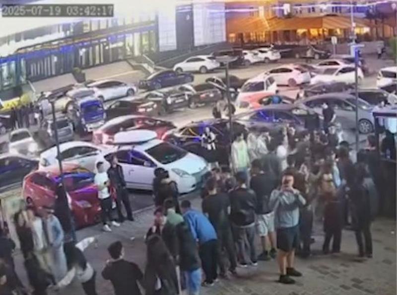 Кадр с камеры видеонаблюдения с началом потасовки возле входа в ночной клуб «Канте» в июле 2025 года