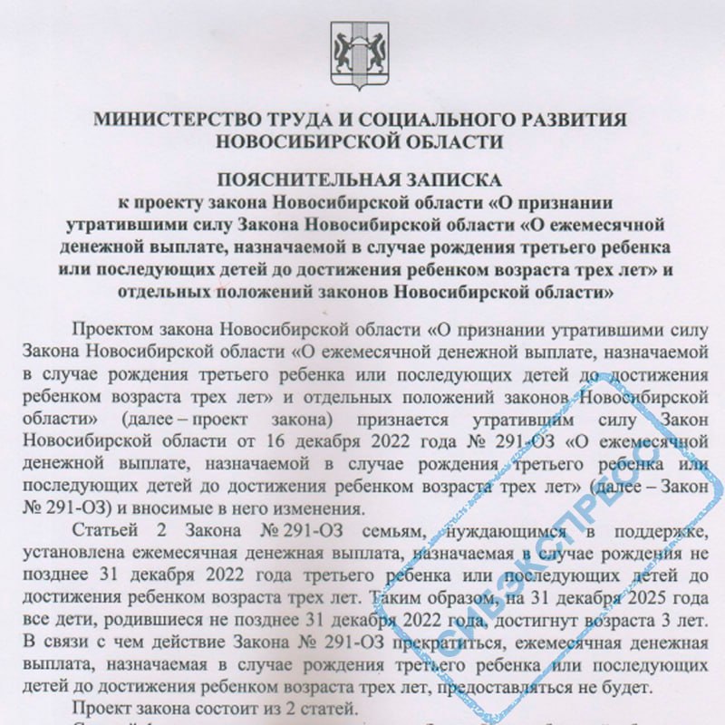 Пока с трибун звучат лозунги о спасении демографии, власти Новосибирской области готовятся тихо свернуть финансовую поддержку многодетных семей. Губернатор Андрей Травников внёс в региональный парламент законопроект, который фактически прекращает выплаты на третьего и последующих детей.