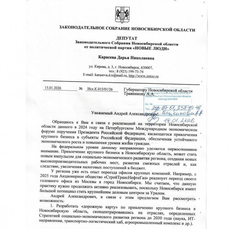 Новосибирская область входит в 2026 год с огромной финансовой дырой, которую не получится закрыть обычными штрафами или налогами на малый бизнес. Депутат Дарья Карасёва решила подсказать губернатору Андрею Травникову, где на самом деле лежат деньги, и предложила начать активную охоту на головные офисы крупнейших российских корпораций.