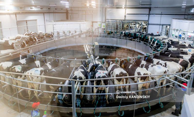 Факты выглядят, конечно, красиво. Новый комплекс ООО «Большедороховское молоко» (ОГРН 1227000007189), входящий в «Холдинг Молоко» (ОГРН 1227000006848) Новожилова, обошёлся в 2,8 миллиарда рублей. На ферму завезли 1999 элитных коров голштино-фризской породы. После выхода на проектную мощность они будут давать 22 тысячи тонн молока в год — 64 тонны в сутки. Для понимания, это примерно пятая часть всего товарного объёма в регионе. Комплекс хорошо оснащён: он включает автоматический доильный зал карусельного типа и собственный кормоцентр.