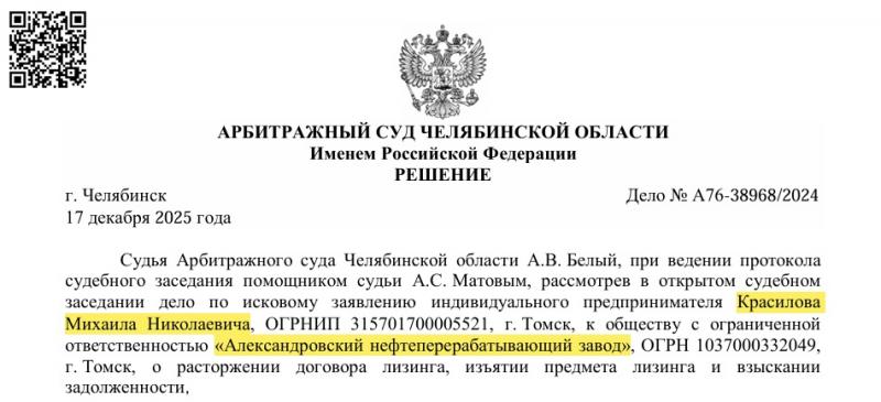 Пока томские власти делают вид, что промышленность региона находится в надёжных руках, Александровский нефтеперерабатывающий завод (ОГРН 1037000332049) готовят превратить в груду холодного металлолома. Арбитражный суд Челябинской области вынес решение, которое может поставить точку в истории предприятия гораздо быстрее, чем многомиллиардные долги перед банками. Ирония ситуации заключается в том, что завод планируют буквально разобрать по винтикам в самый разгар зимы, невзирая на экологические риски и здравый смысл.